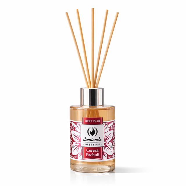 El Difusor Ambiental de Varilla Iluminarte Cereza Patchouli envuelve tus espacios con una fragancia profunda, dulce y sofisticada que combina la intensidad frutal de la cereza con la calidez terrosa del patchouli.