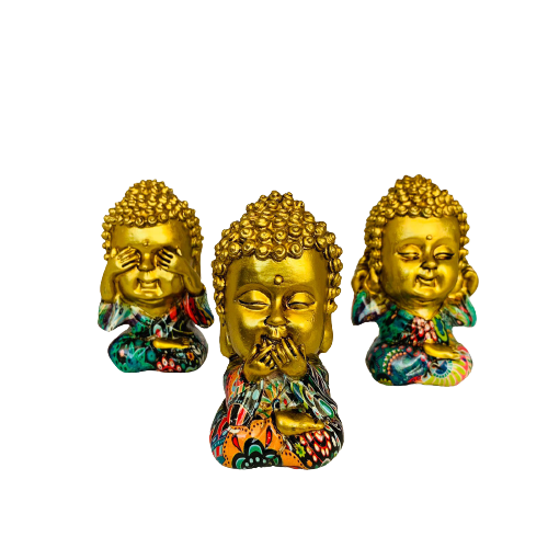 El Set Little Buddha Sabio representa la enseñanza ancestral de los Tres Monos Sabios, símbolo de sabiduría, prudencia y equilibrio interior. Cada figura del pequeño Siddharta Gautama refleja una actitud consciente: no ver el mal, no oír el mal y no hablar del mal. Este mensaje invita a mantener pensamientos, palabras y acciones alineadas con la bondad y la serenidad.
