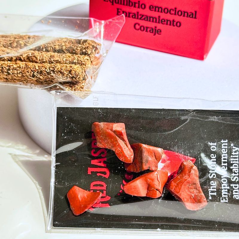 Enciende una varilla de Incienso Jaspe Rojo al comenzar tu día o antes de cualquier actividad que requiera enfoque y estabilidad. Coloca las piedras sobre tu altar o cerca de ti y repite la afirmación: