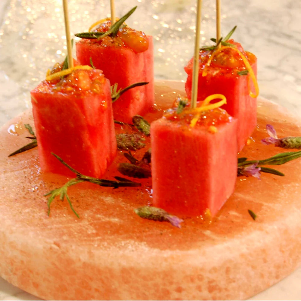 La Tabla de Sal del Himalaya Redonda 20x20x5 cm ✨ es un accesorio único y versátil que transforma la forma de cocinar y servir tus alimentos. Elaborada con auténtica sal rosada del Himalaya, permite preparar carnes, pescados y vegetales directamente sobre ella, impregnándolos de un sabor mineral incomparable. También es perfecta como bandeja elegante para picoteos, quesos o frutas, aportando un estilo rústico y natural a tu mesa.