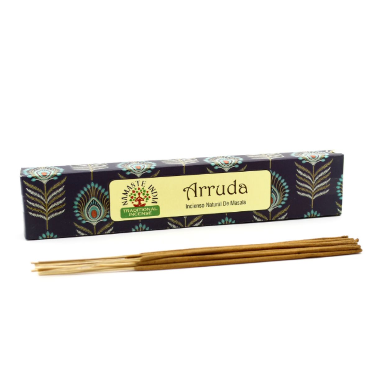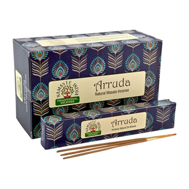 Namaste India – Incienso Ruda, una fragancia ancestral de protección y limpieza que purifica el ambiente, disuelve la negatividad y llena tus espacios de fuerza, claridad y energía positiva.