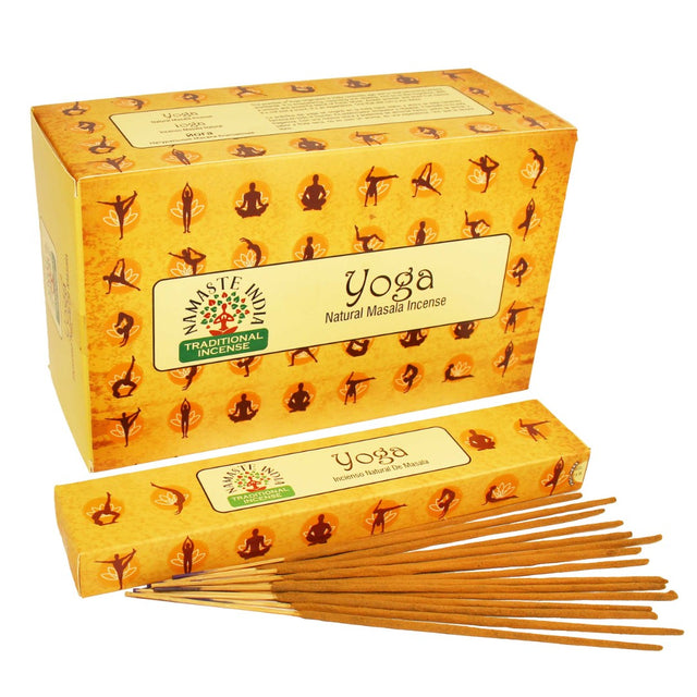 Namaste India – Incienso Yoga, una fragancia equilibrante y espiritual que acompaña tu respiración, eleva tu energía y transforma cada práctica en un momento de conexión y armonía interior.
