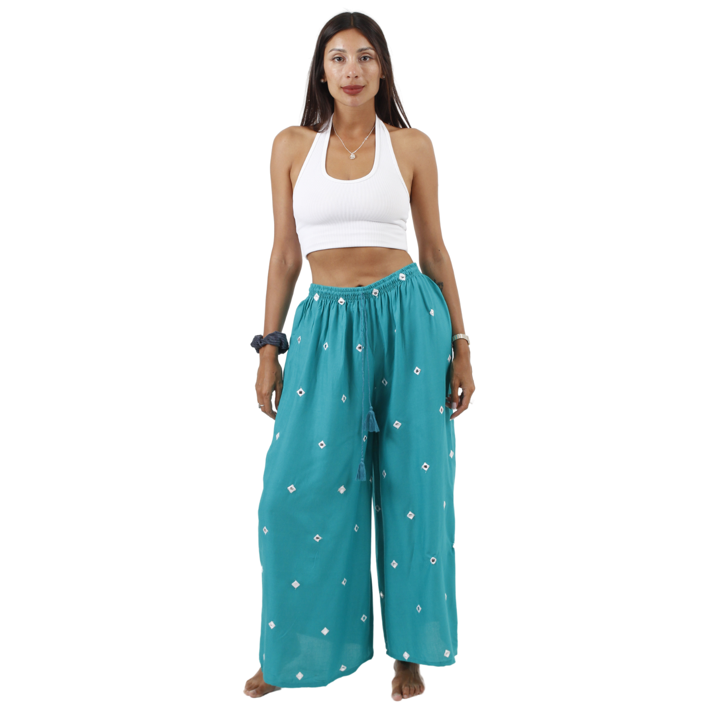 • Estilo: Palazzo fluido con cintura alta y elástica