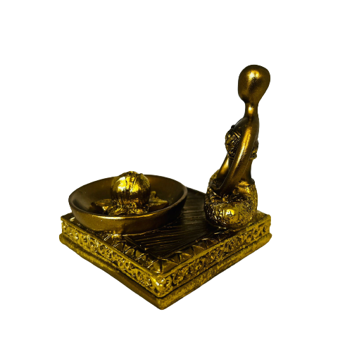 Un porta incienso práctico y decorativo con inspiración oriental. Elaborado en poliresina, sostiene varillas de forma segura mientras recoge la ceniza, manteniendo tu espacio limpio. Su diseño aporta un aire místico y elegante, ideal para ambientar tu hogar con estilo y espiritualidad.