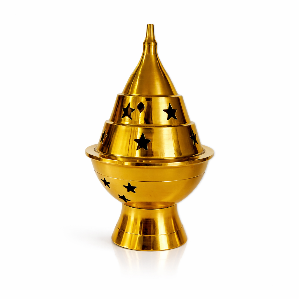 El Porta Incienso y Quemador de Bronce Estrella es una pieza versátil que combina elegancia, funcionalidad y simbolismo espiritual en un solo diseño. Fabricado en bronce resistente, integra soporte para varitas de incienso y quemador para resinas o copitas, convirtiéndose en un accesorio completo para ambientar y purificar tus espacios.