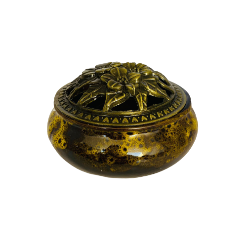 Levantar la tapa – Colocar arena de cuarzo o arroz en el pocillo – Encender una pastilla de carbón y colocarla encima – Añadir 3 a 6 piedras de resina sobre el carbón encendido – Tapar y dejar que el humo aromático se disperse – Mantener fuera del alcance de niños y mascotas – No dejar sin supervisión