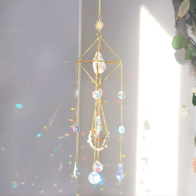 Cada rayo de sol que atraviesa sus cristales facetados se convierte en un arcoíris que ilumina el espacio, promoviendo calma, protección y conexión espiritual.