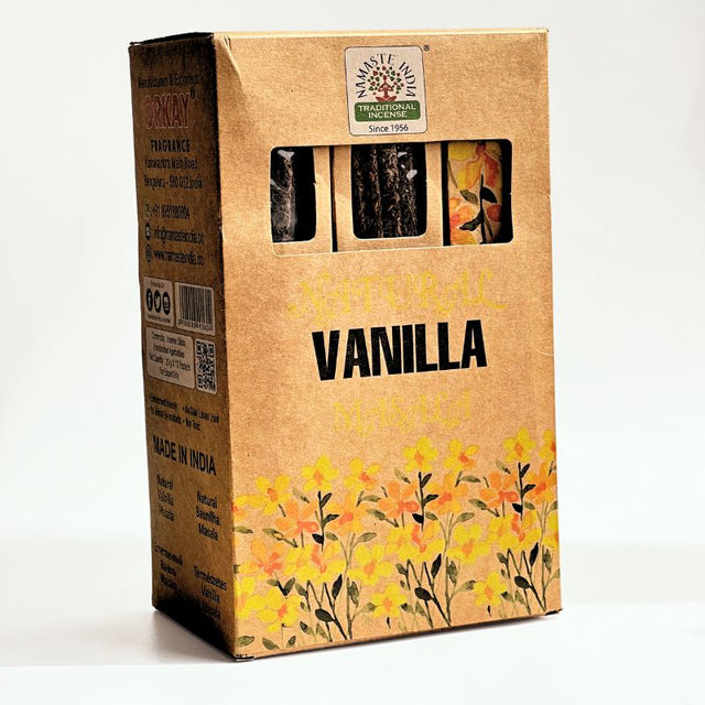 El Incienso Natural Vainilla Orgánico de Namaste India ofrece una fragancia cálida, dulce y envolvente que reconforta el alma. Elaborado con extractos naturales y vainilla pura, este incienso crea un ambiente de armonía, calma y bienestar emocional, ideal para quienes buscan equilibrio y serenidad en su día a día.