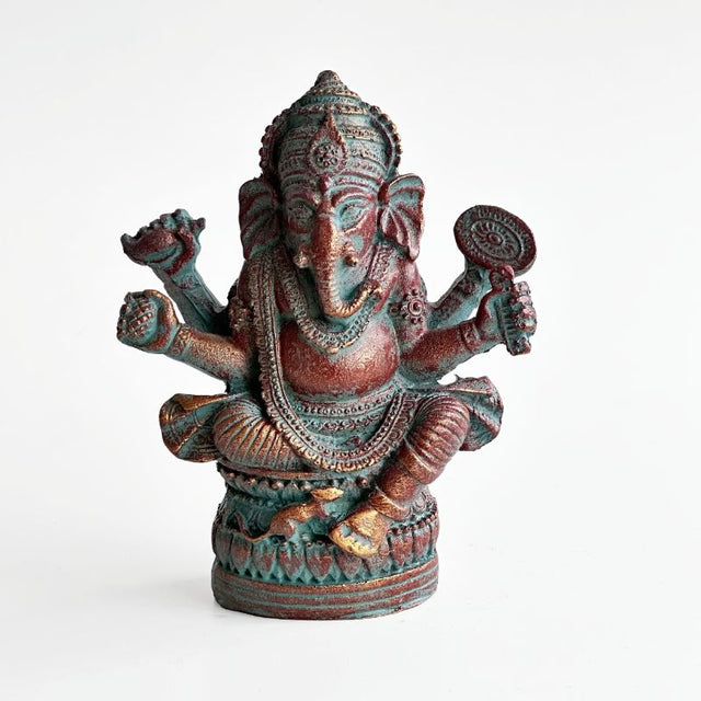 El Ganesha Tantra es una figura de resina con tonos cobre envejecido que representa la energía del éxito, la abundancia y la eliminación de obstáculos. Ideal para decorar altares, espacios de meditación o zonas de trabajo, su presencia invita a la claridad mental, la buena fortuna y la protección espiritual.