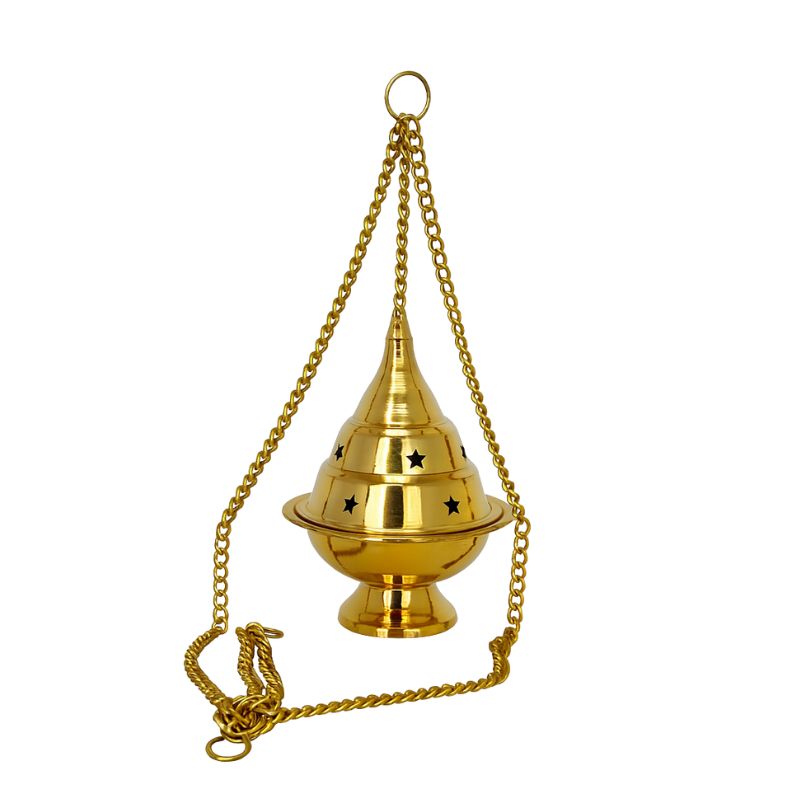 – Un quemador colgante resistente y artesanal para resinas, carbón y copitas.