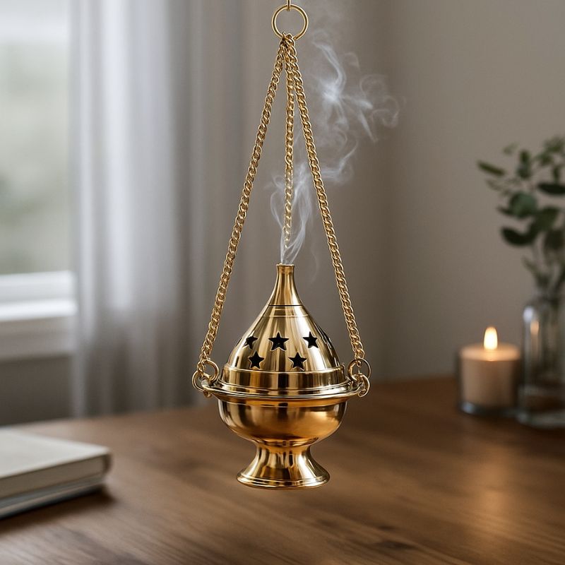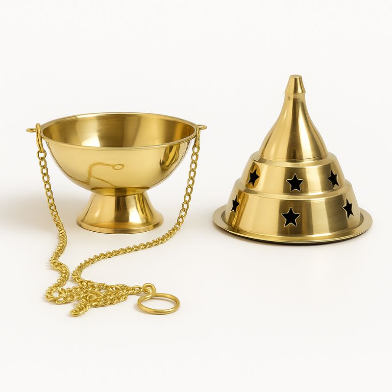 Desde tiempos ancestrales, los quemadores de bronce colgantes han sido utilizados en templos, ceremonias y limpiezas espirituales gracias a su capacidad de purificar espacios con movilidad, permitiendo dirigir el humo hacia lugares específicos mientras se sostiene o se cuelga. Su estructura metálica mantiene el calor de forma segura y su forma cerrada potencia la salida ascendente del aroma, ideal para limpiezas profundas, ofrendas o meditaciones.