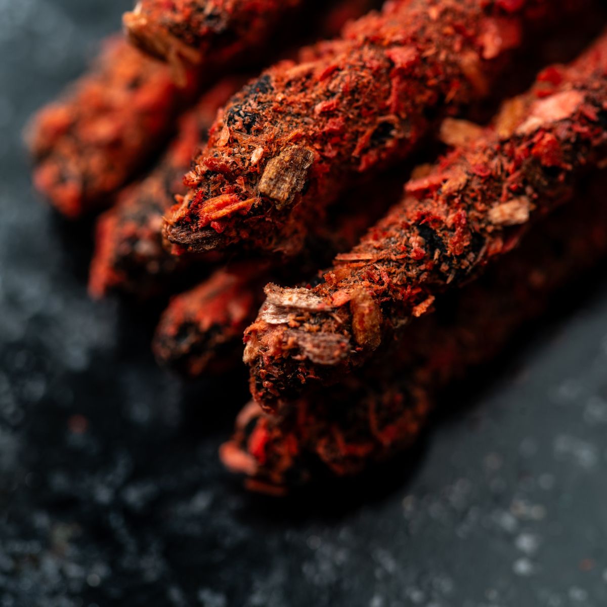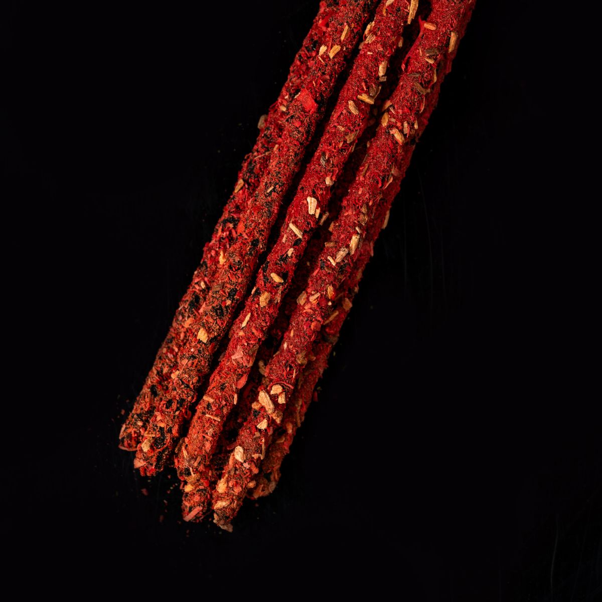 – Composición: Hierbas, resinas, cedro, carbón vegetal, biomasa de frutas, aglutinante natural y sal.