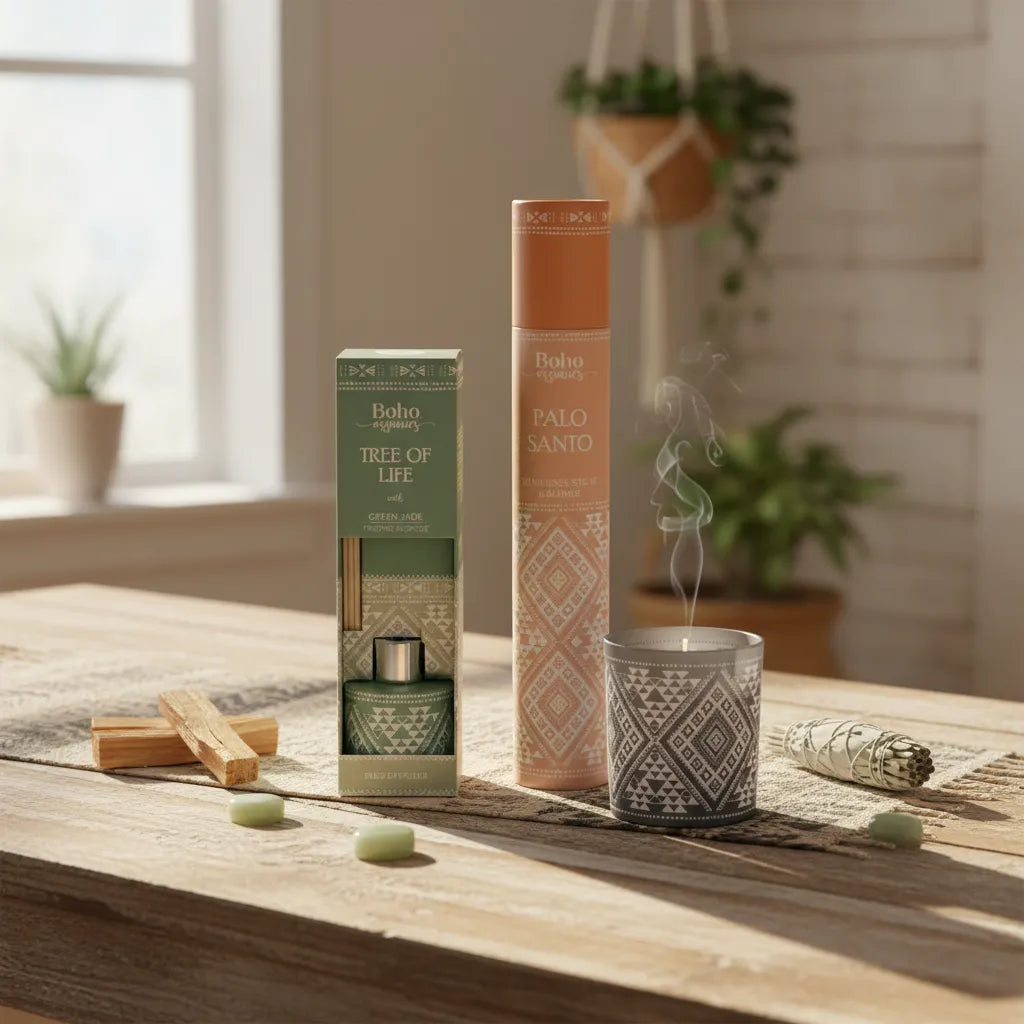 El Kit Boho Song of India es una experiencia diseñada para armonizar tu energía y la de tu espacio, ayudándote a recuperar una sensación de calma, claridad y bienestar en tu día a día.