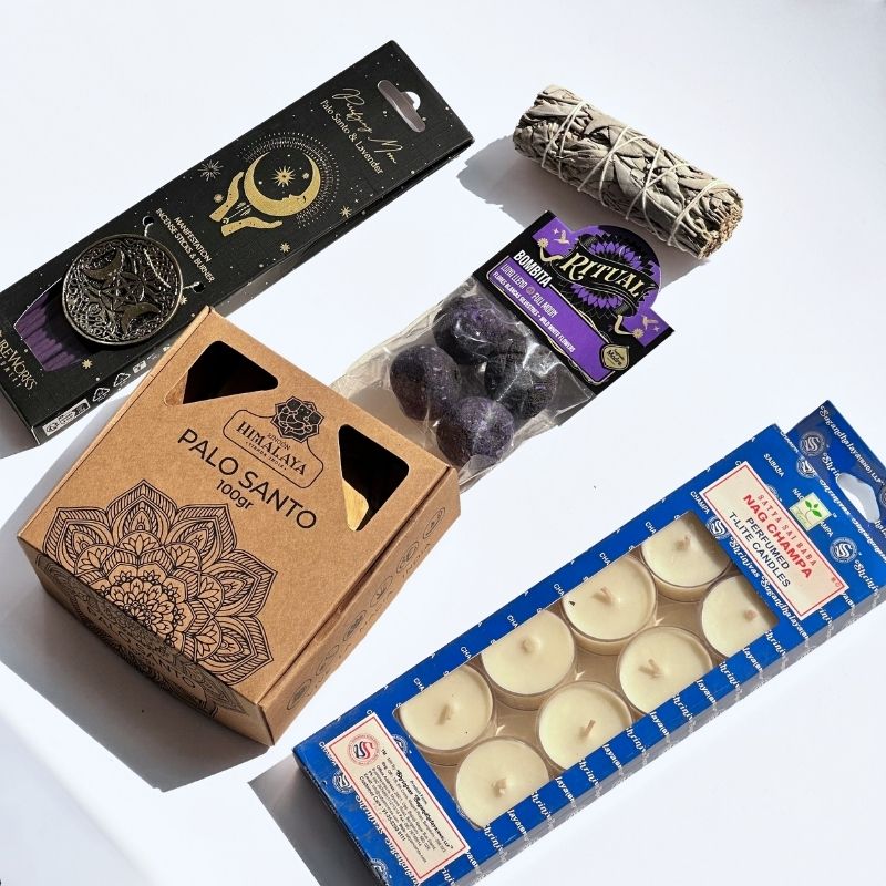 La luna llena es el momento perfecto para liberar lo que ya no sirve, agradecer y manifestar nuevos deseos. Este box reúne los elementos esenciales para guiarte en ese proceso: incienso para purificar, palo santo para elevar, salvia para proteger, vela para encender tu intención y bombas rituales para potenciar la energía.