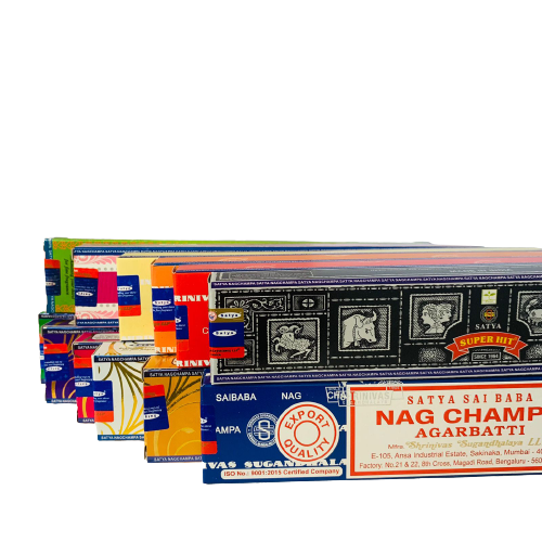 Cada pack incluye 12 aromas distintos de la colección Satya (pueden variar entre los más de 60 disponibles), siempre manteniendo como base el icónico Nag Champa, el incienso más famoso y aclamado del mundo. Sus fragancias transmiten armonía, limpieza energética y bienestar espiritual, adaptándose a cada momento del día.