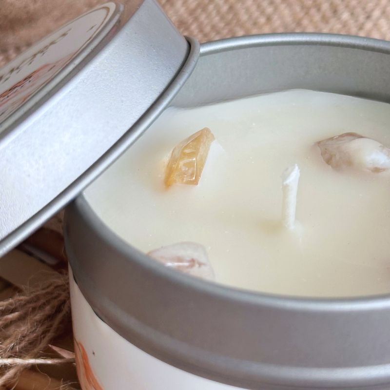 Llena tus días de alegría y energía positiva con la Vela Perfumada Crystal Energy Felicidad, una creación artesanal diseñada para iluminar tus espacios con optimismo, bienestar y armonía. Elaborada con cera de soya y palma natural, libre de toxinas y de origen sostenible, esta vela combina el poder vibrante de los cristales con la delicadeza de las flores para elevar la frecuencia emocional y mental.