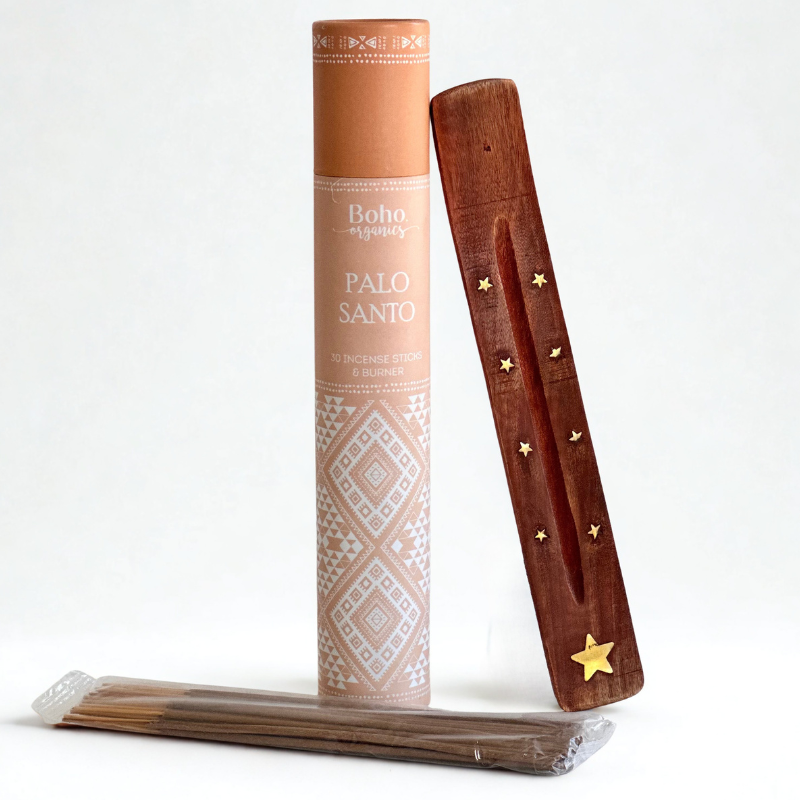 – Estuche Inciensos Boho Palo Santo (30 varillas + porta incienso)