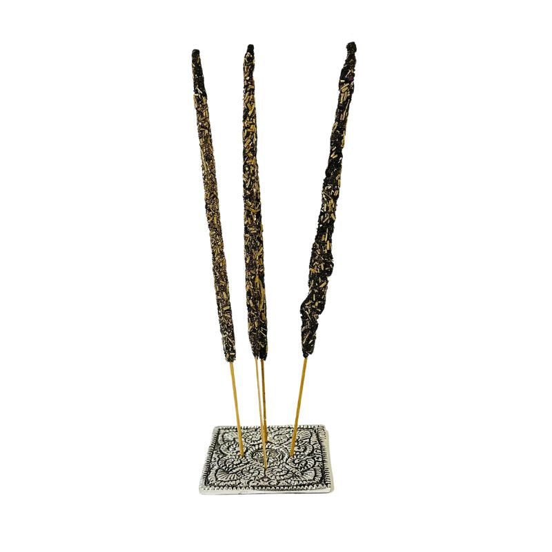 Usar sobre una superficie estable y resistente al calor. No dejar el incienso encendido sin supervisión. Mantener fuera del alcance de niños y mascotas.