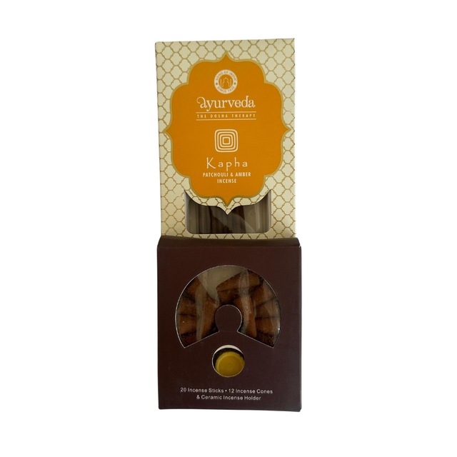 Este set de inciensos en varilla y cono está cuidadosamente formulado para armonizar la constitución psicofísica y estimular el prana (fuerza vital). El incienso está preparado con una mezcla de hierbas, raíces, resinas, esencias aromáticas y otros elementos naturales, utilizados tradicionalmente en la medicina ayurvédica.