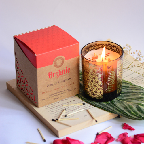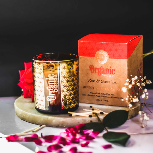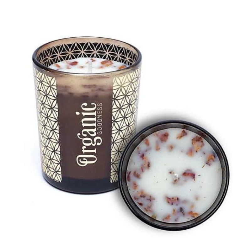 Vela de difuminación Orgánic Goodness se vierte a mano con cera de soya natural sostenible que se quema durante mucho más tiempo. Este frasco hermosamente decorado promete entregar una abundancia de amor, luz y energía positiva.