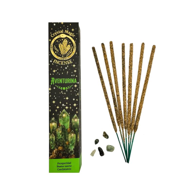 El Incienso con Piedras de Aventurina pertenece a la línea Crystal Magic Tribal Soul de Hari Darshan, una colección que combina la energía curativa de los cristales con fragancias naturales que armonizan el cuerpo y el espíritu. Cada incienso está inspirado en un mineral y contiene piedras auténticas que pueden conservarse como amuleto energético.