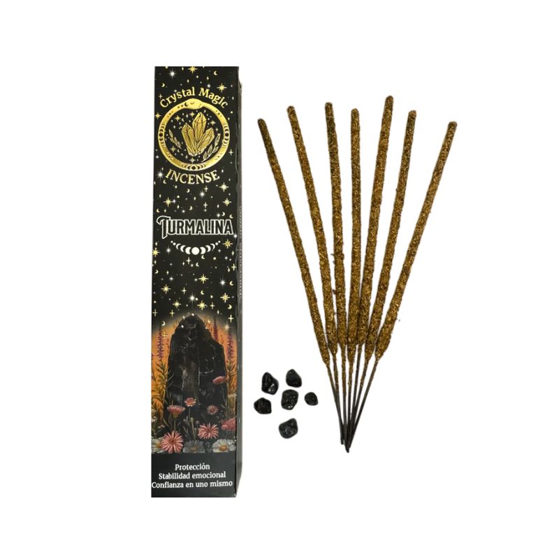 El Incienso con Piedras de Turmalina pertenece a la línea Crystal Magic Tribal Soul de Hari Darshan, una colección que combina la energía protectora de los cristales con fragancias naturales de alta vibración. Cada incienso está inspirado en un mineral y contiene piedras auténticas que pueden conservarse como amuleto para acompañar tus rituales y meditaciones.