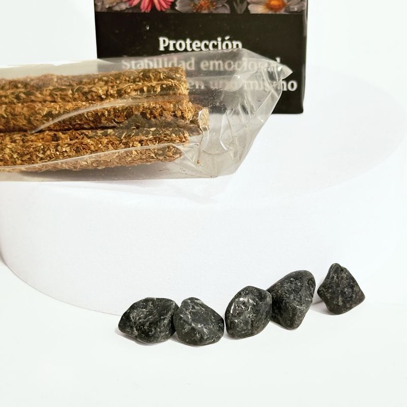 – Incluye piedras naturales de turmalina que pueden conservarse como amuleto.