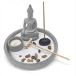 • Incluye: Arena de cuarzo, piedras, rastrillo, porta vela, vela, porta incienso y figura de meditación