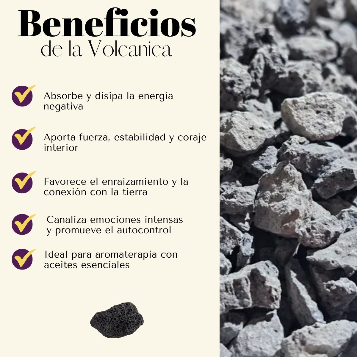 La piedra volcánica tiene un importante poder revitalizante gracias a su energía procedente del interior de la Tierra. Es ideal para estabilizar y equilibrar el chakra raíz.