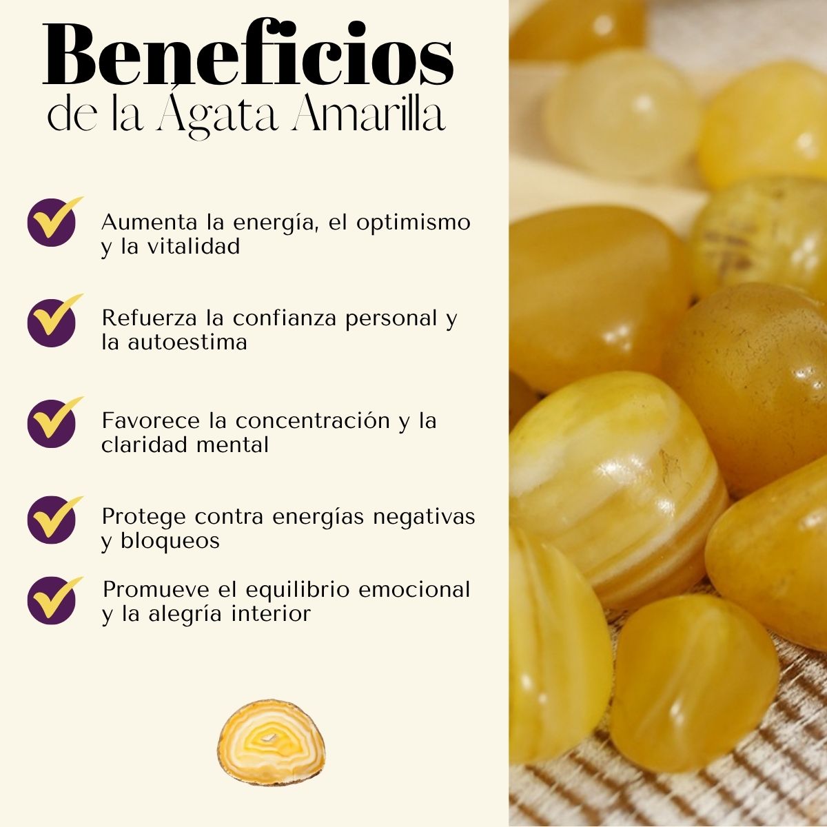 Hecho con agata amarilla que ayuda con la concentración, fuerza de voluntad, memoria y equilibrio.