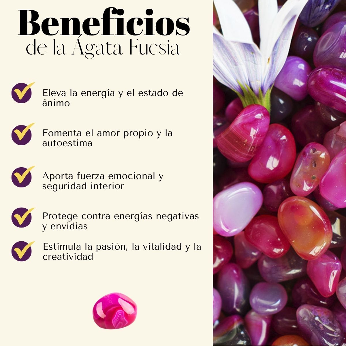 Las propiedades del ágata fucsia es metafísica, muy usado para rituales y limpieza de energía.