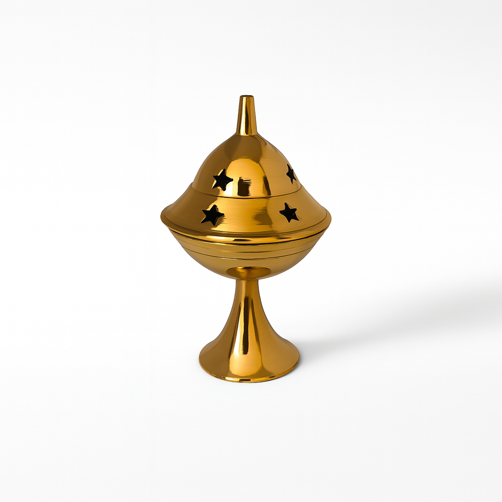 Diseño artesanal en bronce – Función doble: porta incienso y quemador de resina – Ideal para ambientar y purificar