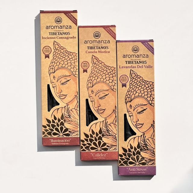 El Pack 3 Sahumerios Tibetanos Aromanza reúne fragancias consagradas y profundamente espirituales para acompañar tus rituales y momentos de conexión. Elaborados con hierbas y resinas naturales, estos sahumerios tibetanos son ideales para meditar, armonizar la energía y llenar tu hogar de paz interior.