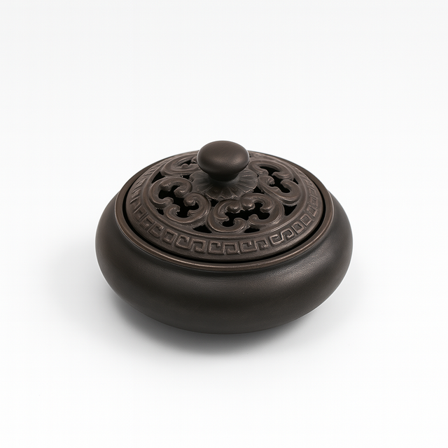 Levantar la tapa – Colocar arena de cuarzo o arroz en el pocillo – Encender una pastilla de carbón y ponerla encima – Añadir 3 a 6 piedras de resina sobre el carbón encendido – Tapar y dejar que el humo aromático se disperse – Mantener fuera del alcance de niños y mascotas – No dejar sin supervisión
